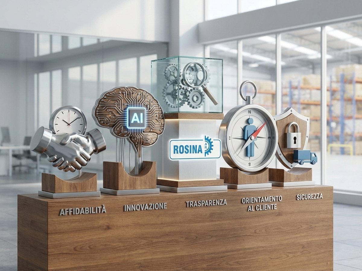 Fondata nel 1984 come impresa di autotrasporti, Rosina Group si è evoluta in un moderno hub di logistica integrata con 12.000 mq di strutture operative tra Este e Ponso. Oggi semplifichiamo la complessità logistica delle aziende del Nord Italia unendo l'affidabilità storica all'innovazione, grazie all'adozione di software proprietari basati sull'intelligenza artificiale per ottimizzare magazzino e consegne.